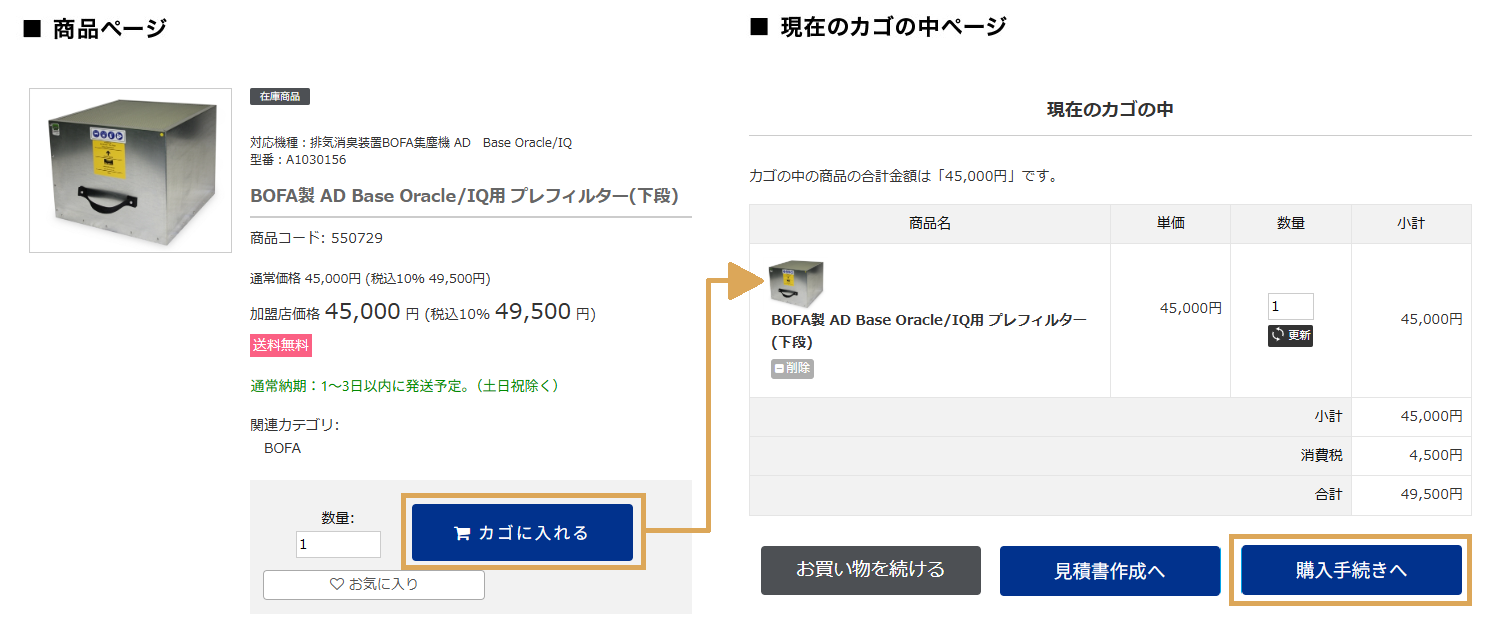 商品ページで購入する場合