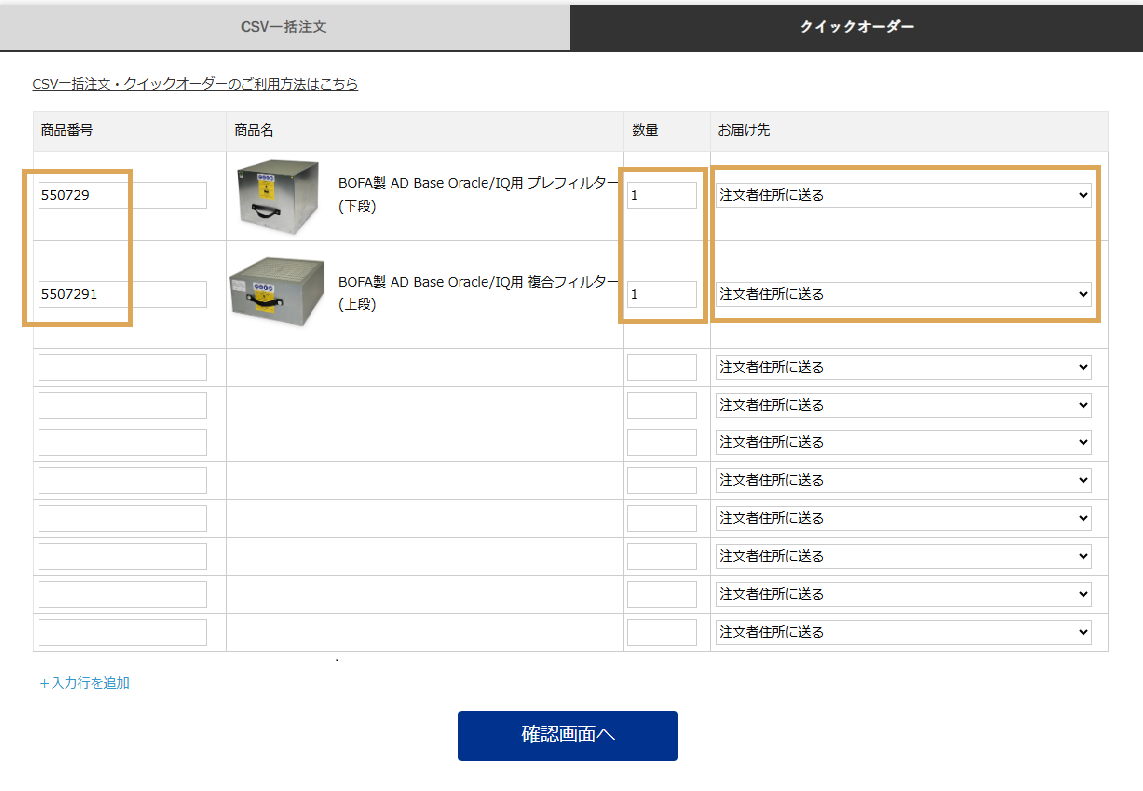 クイックオーダーで購入する場合【CSV一括注文】